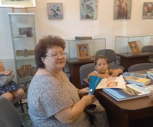 amelia Hristian, șef Serviciul Relații Publice a prezentat expoziția temporară „Cromatic”. Pictură, Acuarele, Icoane pe sticlă și lemn - semnate de artistul plastic Nela Constantinescu | Obiecte din colecțiile Asociației „Hristo Botev” a Bulgarilor din Brăila.