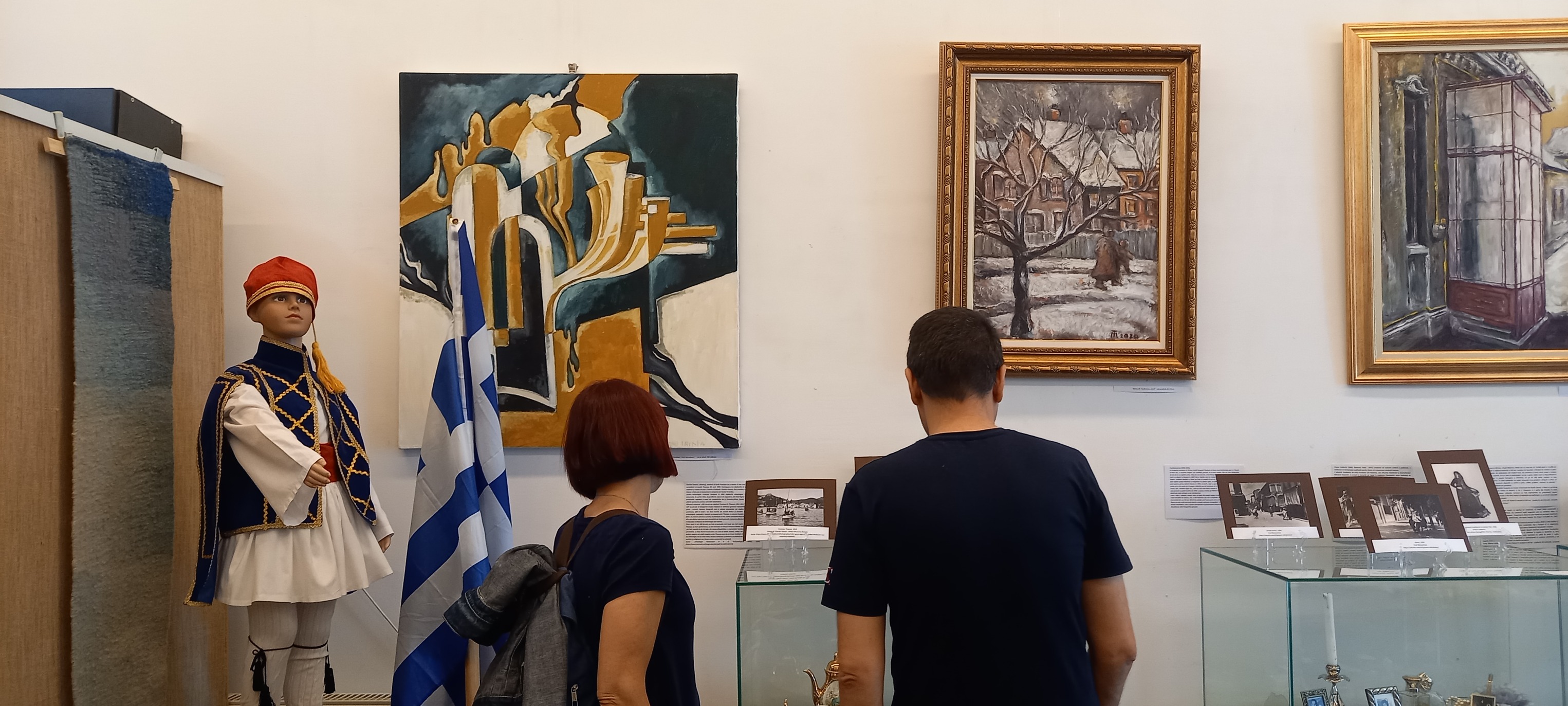 Camelia Hristian, șef Serviciul Relații Publice a prezentat expozițiile temporare OBIECTE din sec. XIX de la Biserica Buna Vestire „Greacă” Brăila și din scrinul cu amintiri de la familii membre ale Comunității Elene Brăila: Beatrice Dobrescu (Ispir), Florentina Mușat, Elena Salomeea Kaloxilos Moraru, Jana Andreescu, Marilena Ioanid | LUCRĂRI DE ARTĂ semnate de artiştii plastici (din Brăila, Galați, Brașov și București): Jana Andreescu, Gheorghe Andreescu, Irina Ariton, Marilena Ioanid, Irina Ionescu Berechet, Elena Salomeea Kaloxilos Moraru, Gheorghe Mosorescu, Iulia Pastorcici, Dennis Teodorescu, Marius Teodorescu, Traian Tsamuris | FOTOEXPOZIȚIE „INCURSIUNE ÎN VESTIMENTAȚIA GREACĂ, ÎN SEC. XVI - XX”. Documentare: Camelia Hristian - deschisă cu ocazia Zilei Naționale a Greciei | „Felicitări din perioada 1912 - 1946, pentru Sărbătorile Pascale”. Colecția Florentina Cristina Mușat | „Lumânări pentru Noaptea de Înviere / Πασχαλινές Λαμπάδες” decorate la Cercul de Pictură al Comunității Elene, coordonat de prof. Elena Salomeea Kaloxilos Moraru, artist plastic | „Peisajul fluvial brăilean”. Lucrări pe pânză realizate de elevi în Proiectul educațional județean „Peisajul brăilean în culoare, credință și lectură” - dedicată Zilei Internaționale a Dunării.