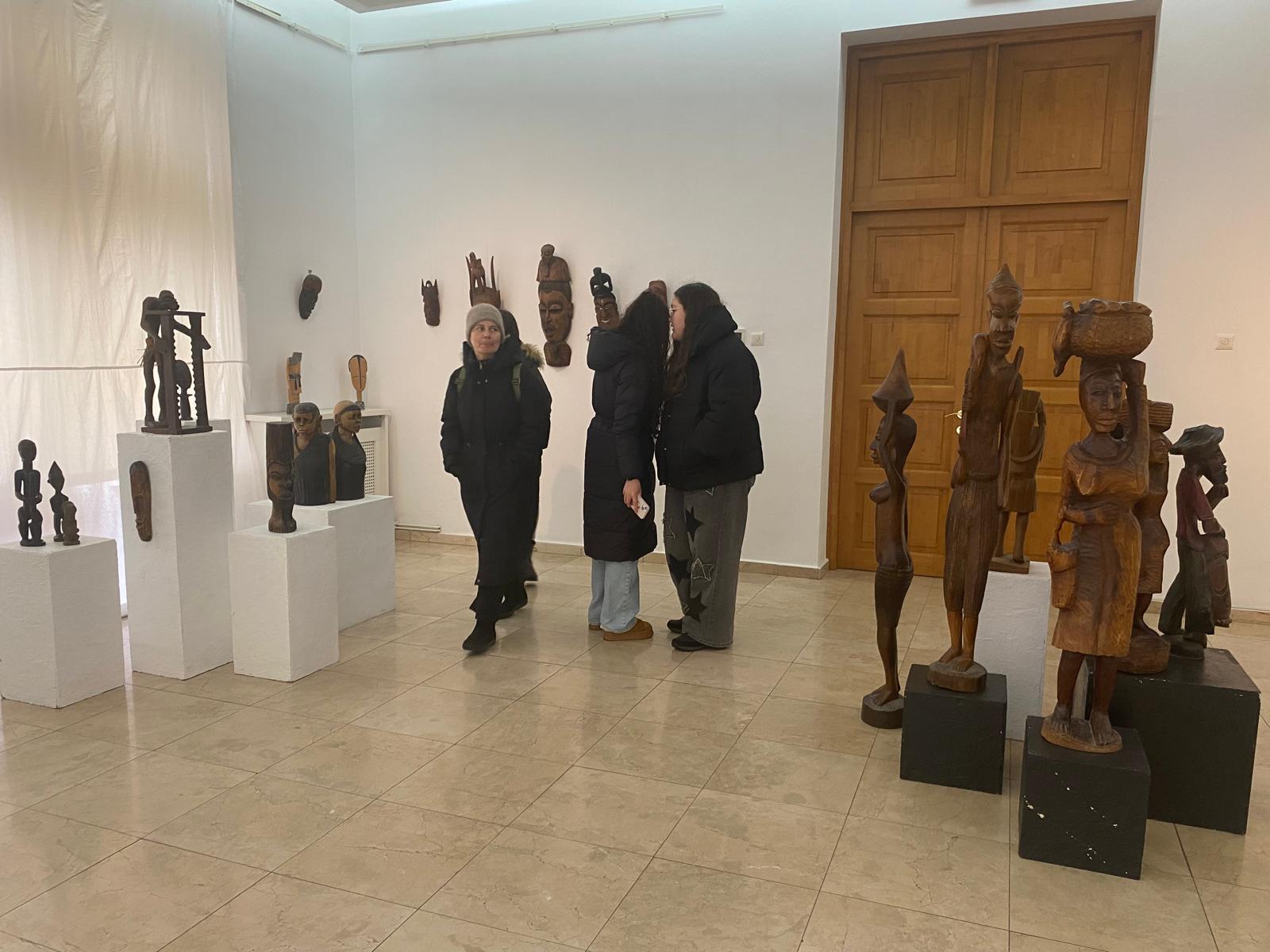 Vizitatori în Expoziția de artă africană din colecția particulară „Victor Adam”, la Muzeul Brăilei „Carol I” - Galeria „Gheorghe Naum”.