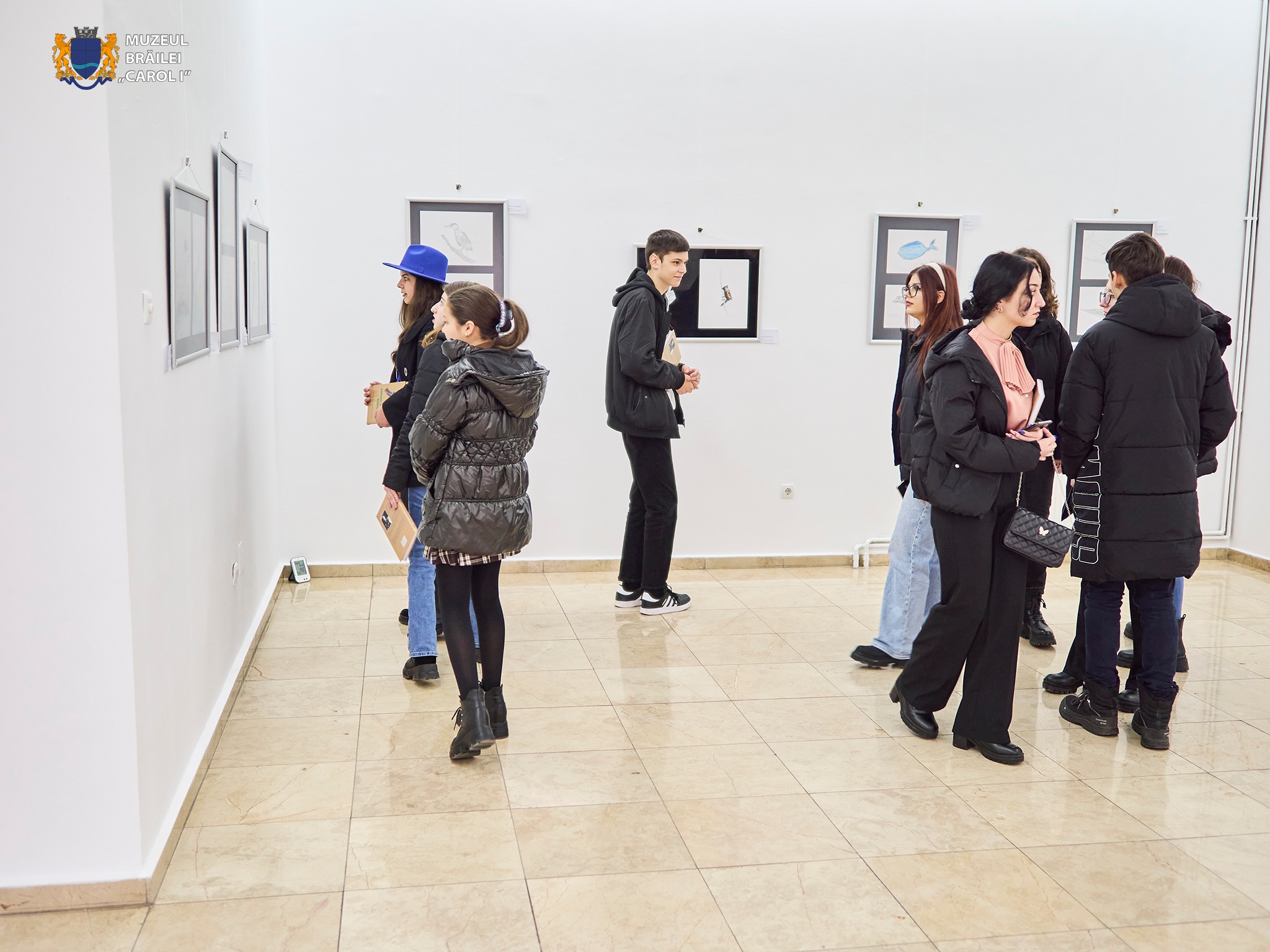 VIZITATORI în expoziția de desene „La pas prin Bălțile Brăilei”, la Muzeul Brăilei „Carol I” - Galeria „Gheorghe Naum”