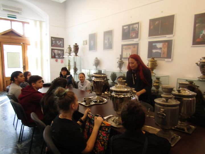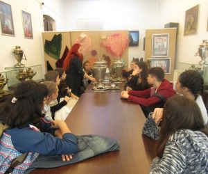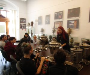 A fost vizitată expoziţia temporară „POVEŞTI ÎN JURUL SAMOVARULUI": Samovare, secolele XIX - XX. Colecţia George - Gabriel Chendea (Piatra Neamţ), provenind din ateliere celebre ca Batașev, Voronțov, Șemarin, Vanukin, Gutkovoi ș.a. din Rusia țaristă − cele mai multe din regiunea Tula, dar și din Moscova −, precum și din Polonia, respectiv din Cracovia și Varșovia | Baticuri cu broderie manuală şi accesorii. Colecţia Comunităţii Ruşilor Lipoveni Brăila | Pictură. Paul Petrov, artist plastic.