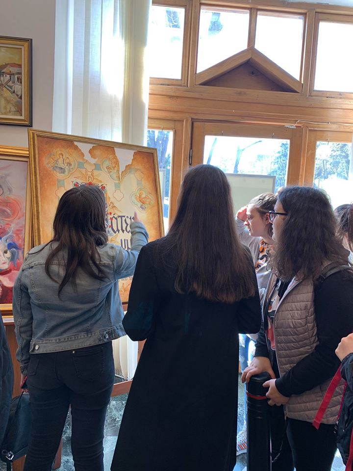 Elevii au vizitat expoziţia temporară „Rădăcini” − Pictură, desen, tapiserie semnate de artiştii plastici Jana Andreescu, Marilena Ioanid, Elena Salomeea Kaloxilos Moraru, Dennis Teodorescu, Marius Teodorescu │Obiecte de la familiile Reghina Caligas, Beatrice Dobrescu, Jana Andreescu, Dimitris Lintas Tzanis, Marilena Ioanid, Elena Salomeea Kaloxilos Moraru, Veronica Macri, Manuela Dumitrescu, Costel Mândroiu şi din colecţiile Comunităţii Elene Brăila │Obiecte handmade realizate de Elena Salomeea Kaloxilos Moraru, Florentina Snae, Costel Mândroiu │Fotoexpoziţie.