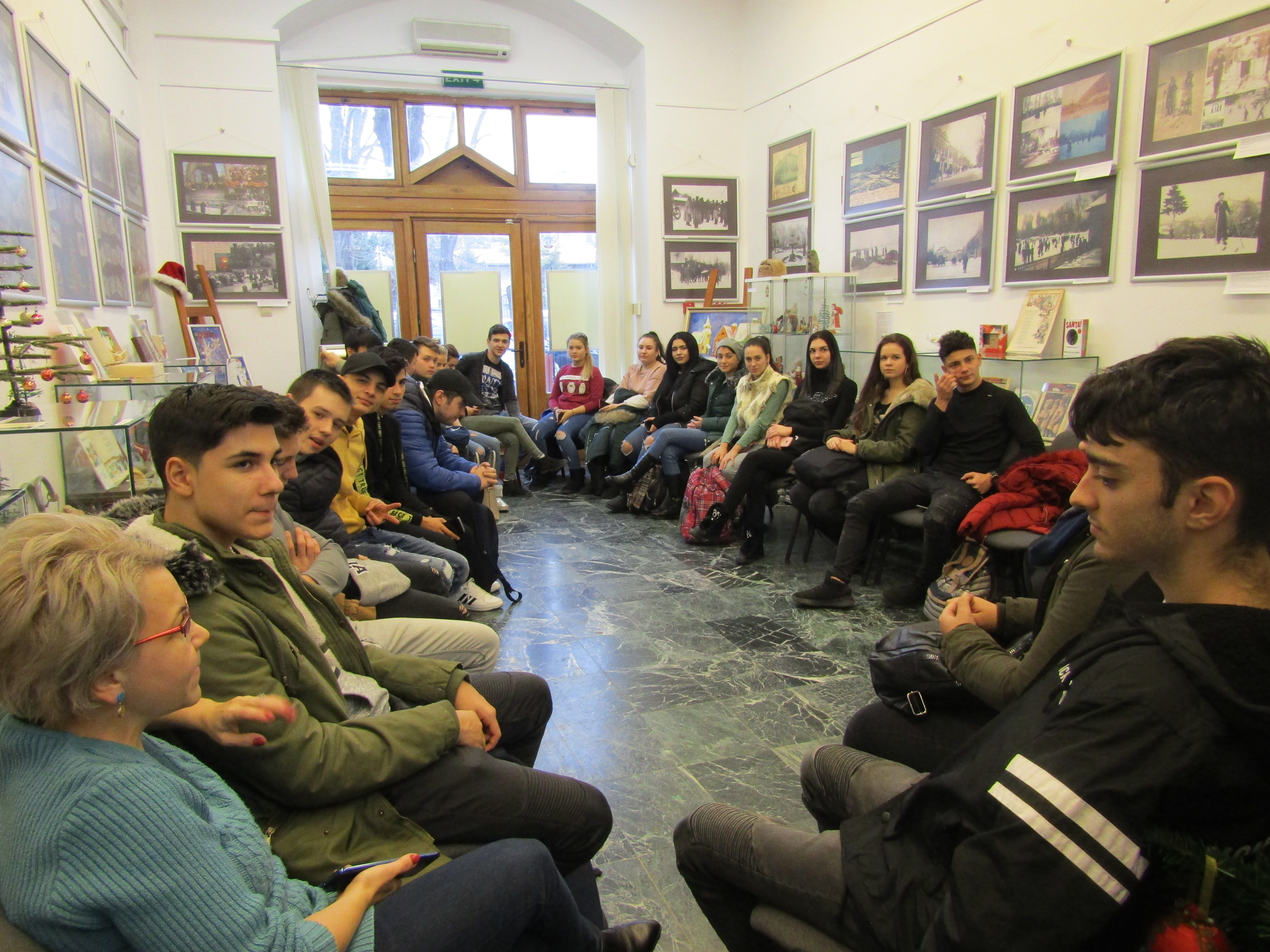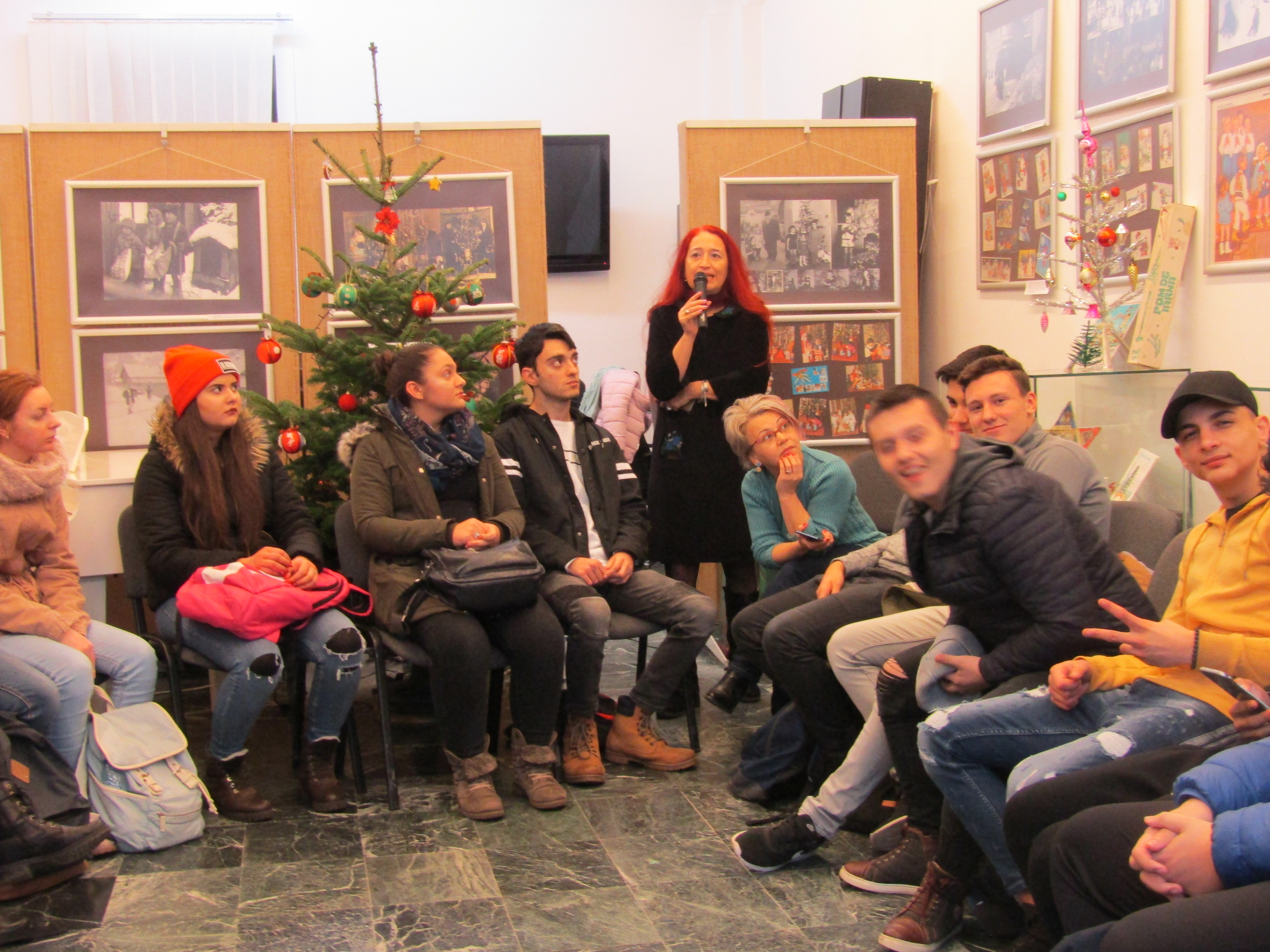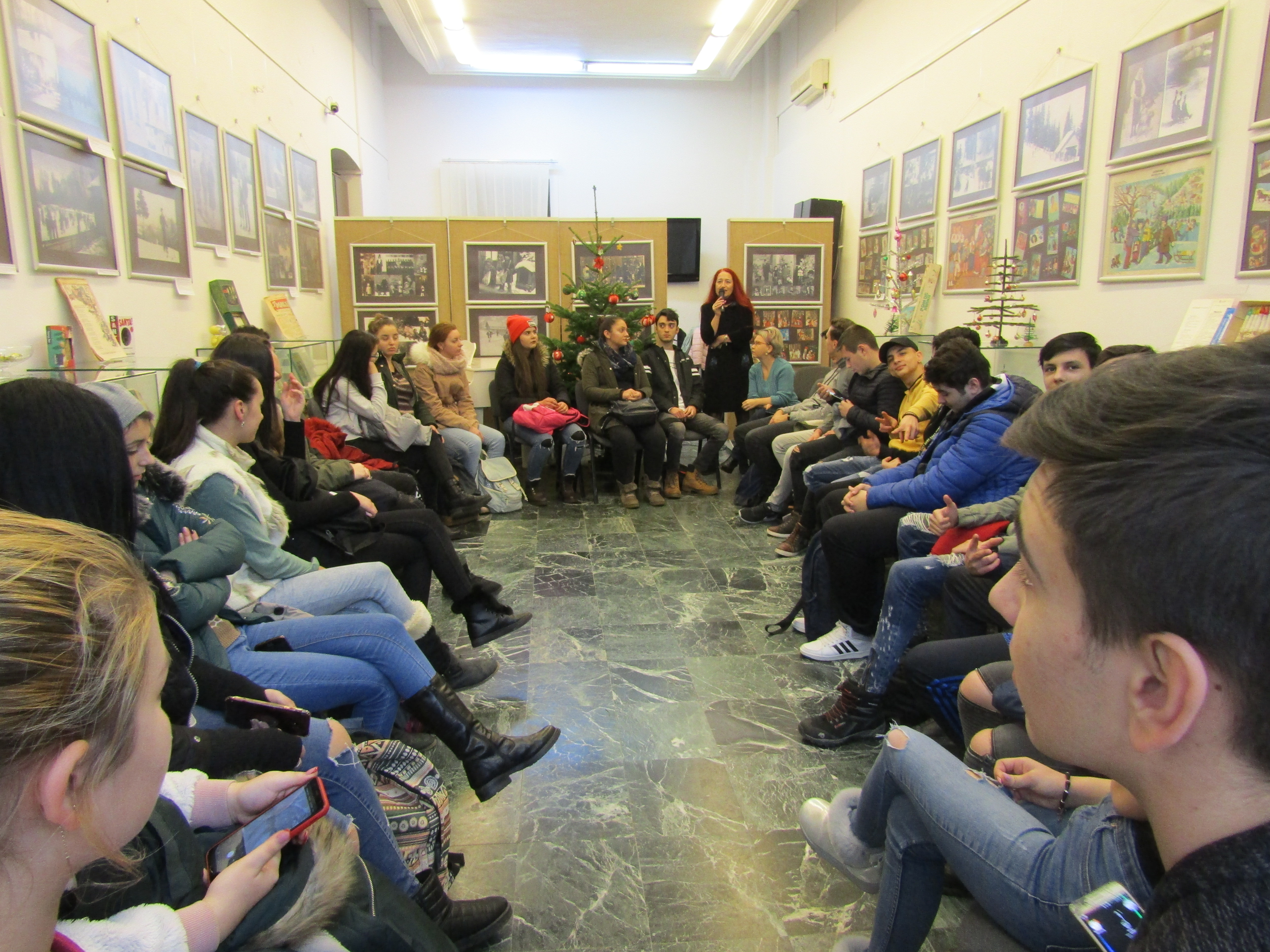 Tinerii au vizitat expoziţia temporară „Unde sunt zăpezile de altădată...?”. Obiecte şi fotografii din perioada 1900 - 1980, de la Asociaţia Muzeul Jucăriilor Bucureşti - colecţia ing. Cristian Dumitru şi Mihail Dumitru │ Fotoexpoziţie │ Poveşti de altădată │Bradul natural e împodobit cu globuri realizate la atelierul Comunităţii Elene Brăila, coordonat de prof. Elena Salomeea Kaloxilos, artist plastic.