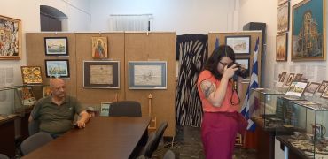 Camelia Hristian, șef Serviciul Relații cu Publicul a prezentat expoziția temporară deschisă cu ocazia Zilei Naționale a Greciei: OBIECTE din sec. XIX de la Biserica Buna Vestire „Greacă” Brăila și din scrinul cu amintiri de la familii membre ale Comunității Elene Brăila: Florentina Cristina Mușat, Beatrice Dobrescu, Mihai Feraru, Veronica Macri, Jana Andreescu, Elena Salomeea Kaloxilos Moraru, Marilena Ioanid | ICOANE, PICTURĂ, TAPISERIE semnate de artiştii plastici (din Brăila, Brașov, București, Galați, Tulcea): Jana Andreescu, Gheorghe Andreescu, Marilena Ioanid, Cristina Ionescu Berechet, Irina Ionescu Berechet, Elena Salomeea Kaloxilos Moraru, Mioara Mitu, Gheorghe Mosorescu, Elena Orbocea, Iulia Pastorcici, Dennis Teodorescu, Marius Teodorescu, Traian Tsamuris | Fotoexpoziție „CĂLĂTORIE PE DUNĂRE ȘI ÎN DIASPORA GREACĂ DIN ORAȘELE DUNĂRENE, DE LA IZVOARE LA VĂRSARE” și Mini-expoziție cu lucrări de pictură semnate de Nela Constantinescu, membră a Asociației „Hristo Botev” a Bulgarilor din Brăila.