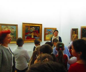 VIZITATORI, la Muzeul Brăilei „Carol I" - Secţia Artă. Grup de la Şcoala Gimnazială „I. L. Caragiale"