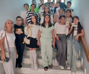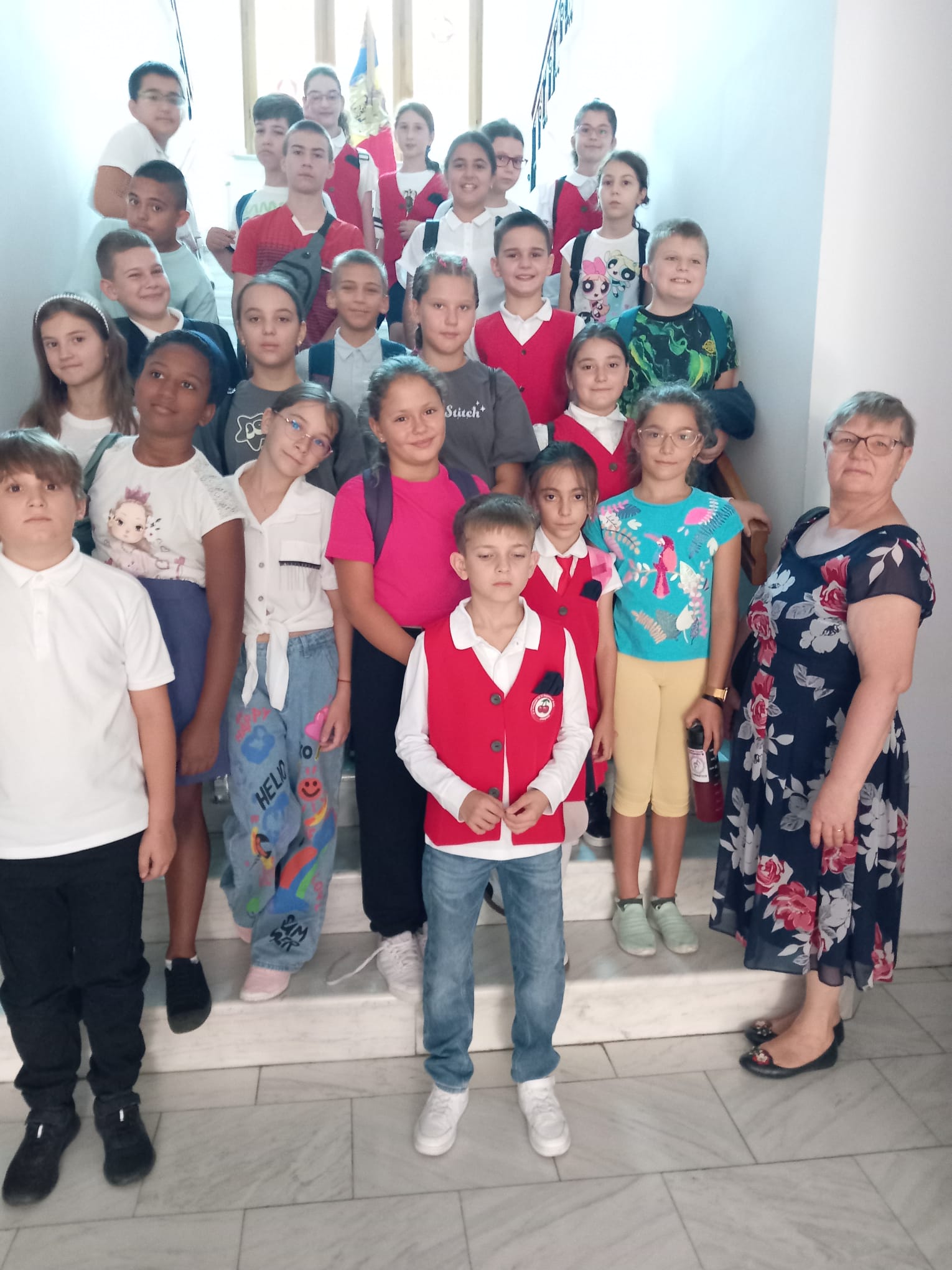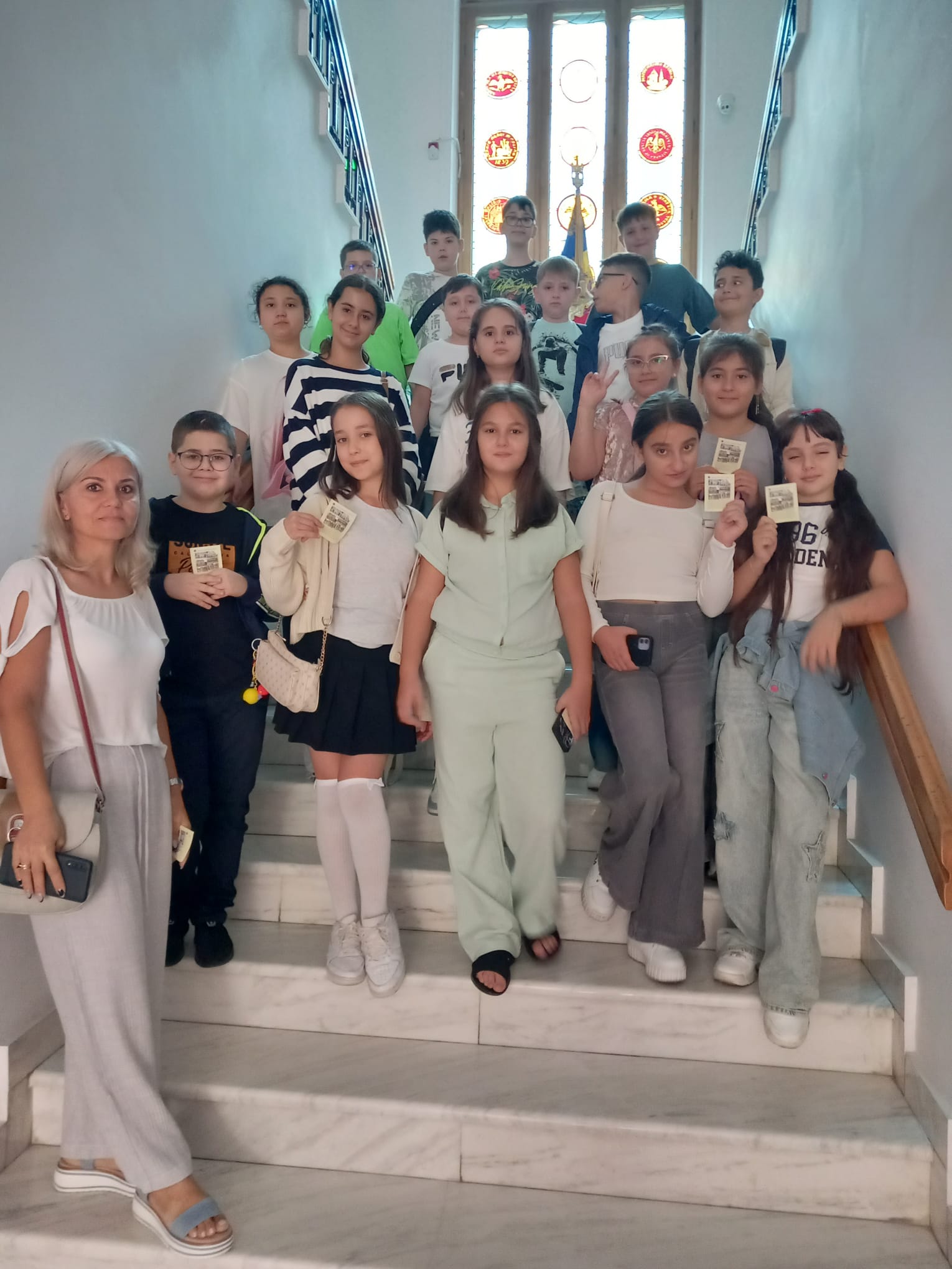 Grup de la Colegiul Național Pedagogic „D. Panaitescu Perpessicius”, însoțit de prof. înv. primar Liliana Dragomir și prof. înv. primar Anica Frigioiu.