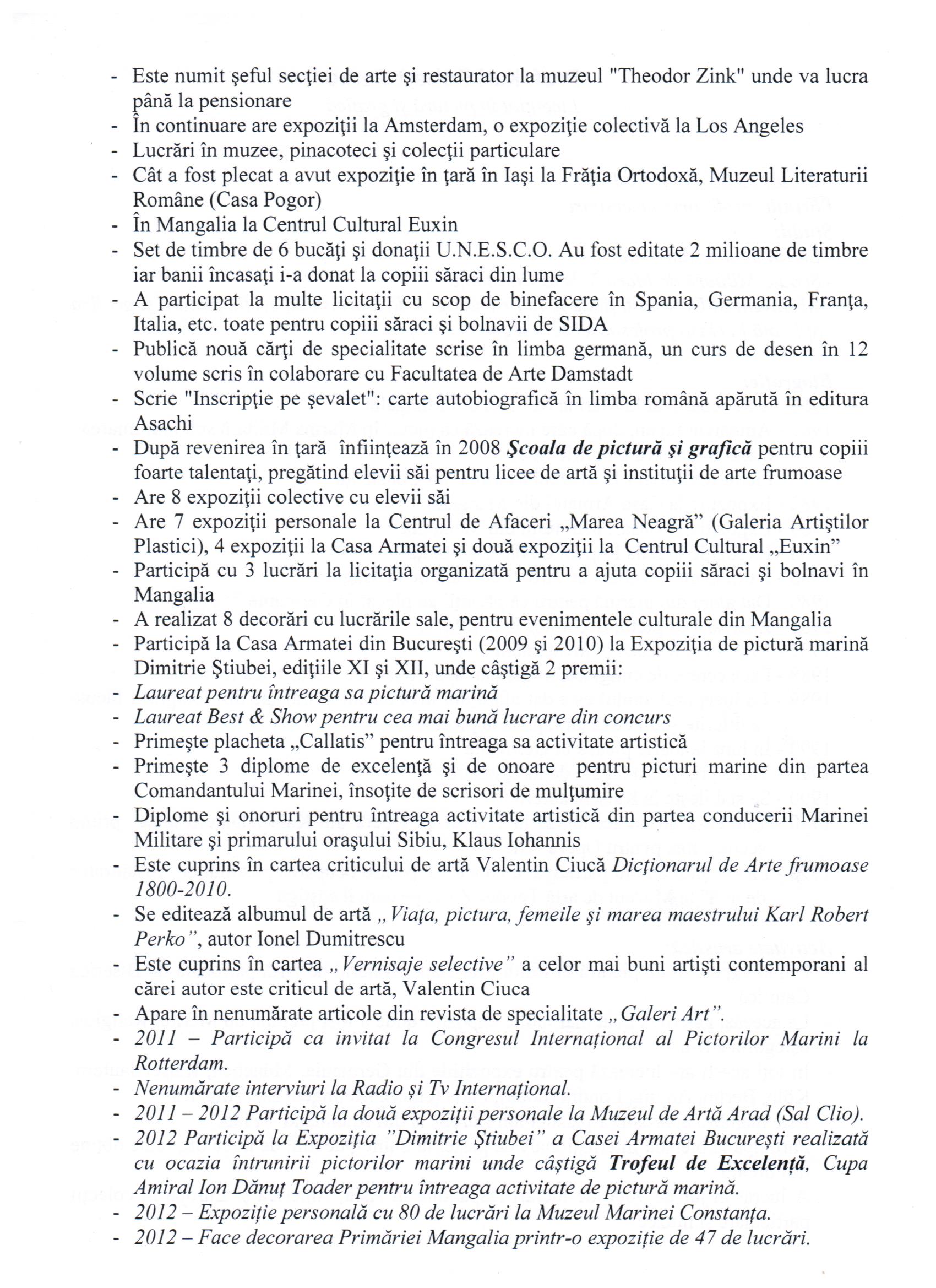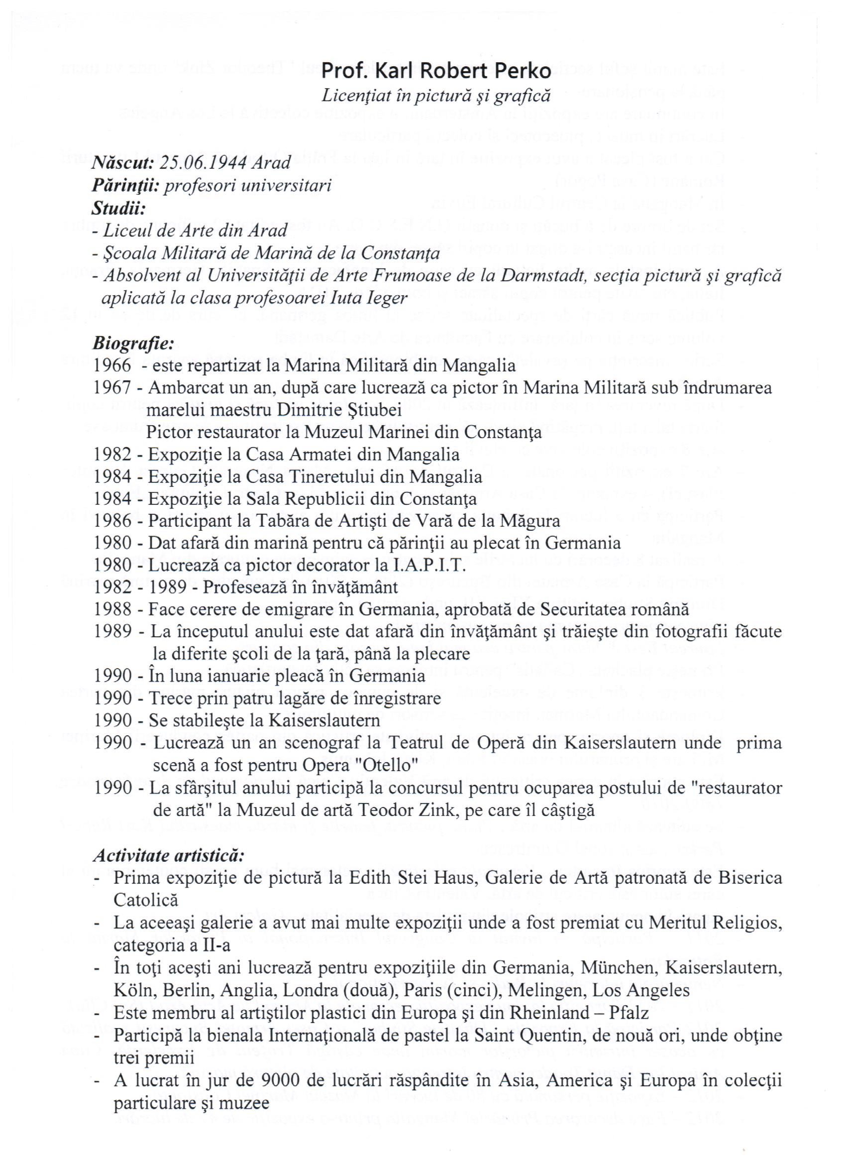 Karl Robert Perko (Mangalia), artist plastic, membru al Uniunii Artiştilor Plastici din Europa şi din Rheinland-Pfalz.