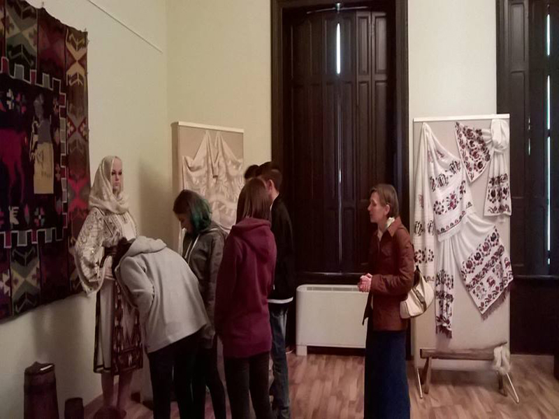 Elevi ai Liceului de Arte „Hariclea Darclée" Brăila, în documentare la Muzeul Brăilei „Carol I" - Secția Etnografie.