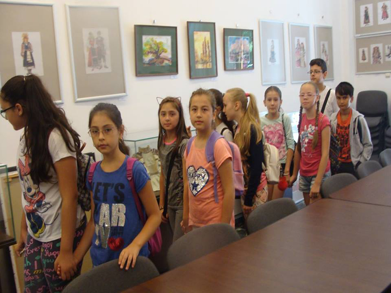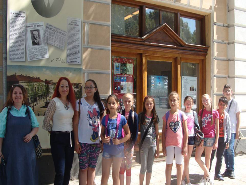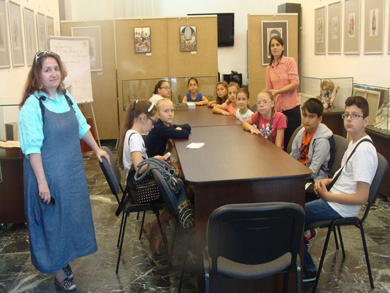 Vizitatori, la sediul Muzeului Brăilei „Carol I”. Activitate în cadrul Şcolii de Vară, coordonate de Armanda Filipine, jurnalist („Brăila Chirei”). Elevi de la Şcoala Gimnazială „Vasile Alecsandri".