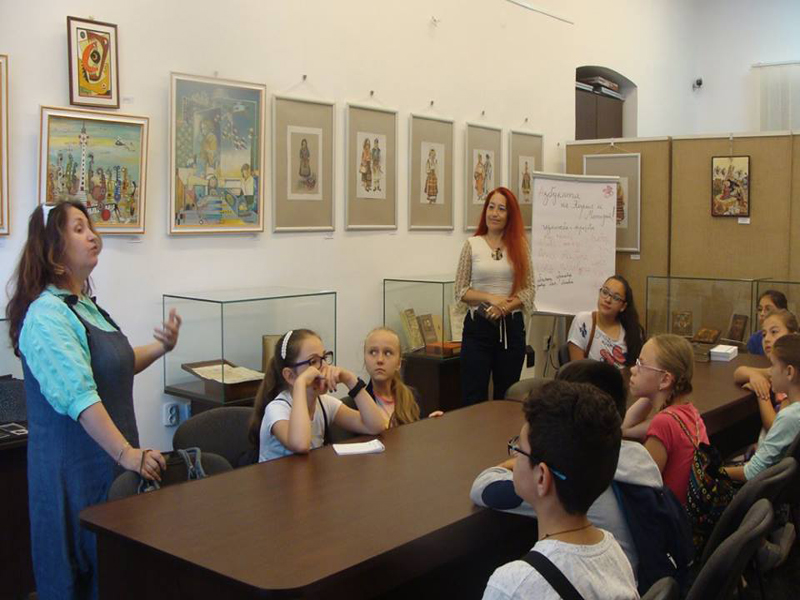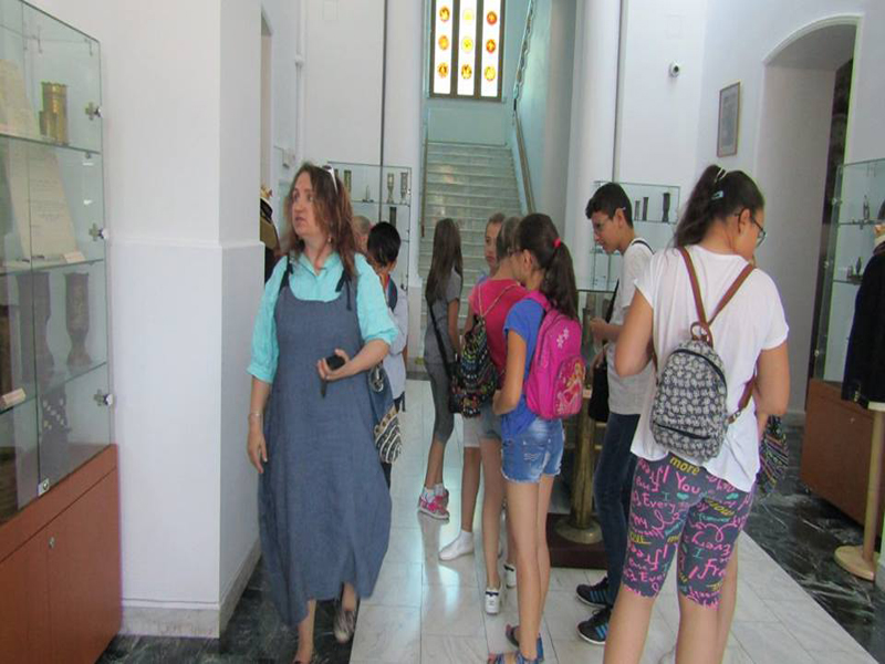 Vizitatori, la Muzeul Brăilei „Carol I” - Centrul Diversităţii Culturale. Activitate în cadrul Şcolii de Vară, coordonate de Armanda Filipine, jurnalist („Brăila Chirei”). Elevi de la Şcoala Gimnazia