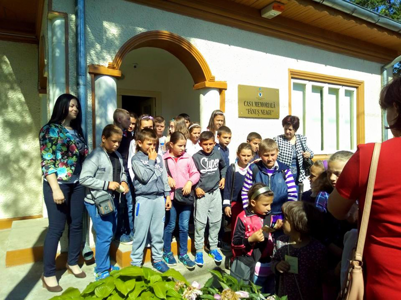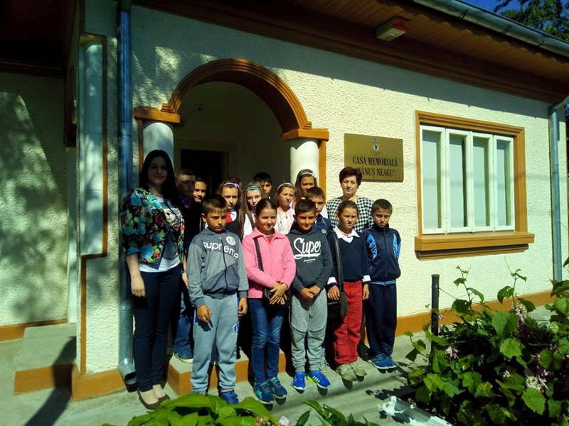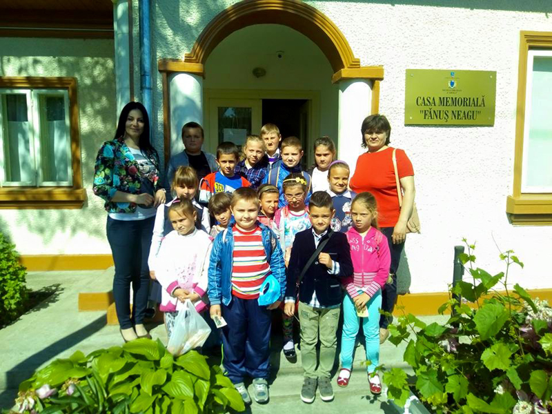 Vizitatori, la Muzeul Brăilei „Carol I” - Casa Memorială „Fănuş Neagu”. Grup de elevi de la Școala Gimnazială Racoviţa.