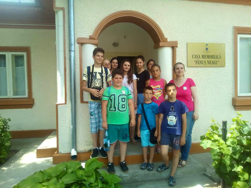 Vizitatori, la Muzeul Brăilei „Carol I” - Casa Memorială „Fănuş Neagu”. Grup de elevi de la Școala Gimnazială „Mihai Eminescu" Brăila. Activitate, în cadrul Școlii de vară „Tradiții și obiceiuri din j