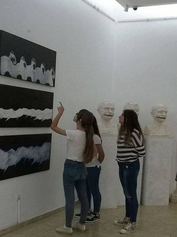 Vizitatori, la Muzeul Brăilei „Carol I” - Galeria de Artă „Gheorghe Naum”. Expoziţia Ziarului Neconvenţional România. Elevi de la Liceul de Arte „Hariclea Darclée"