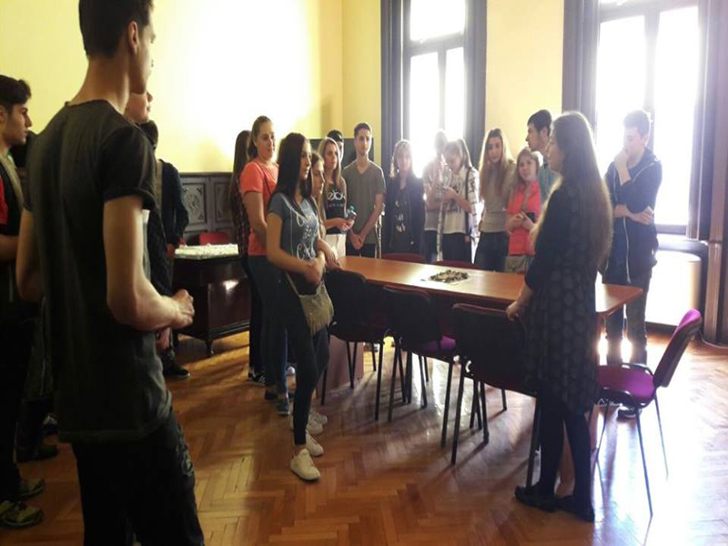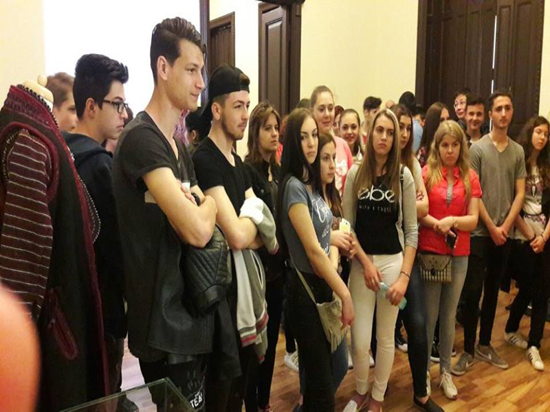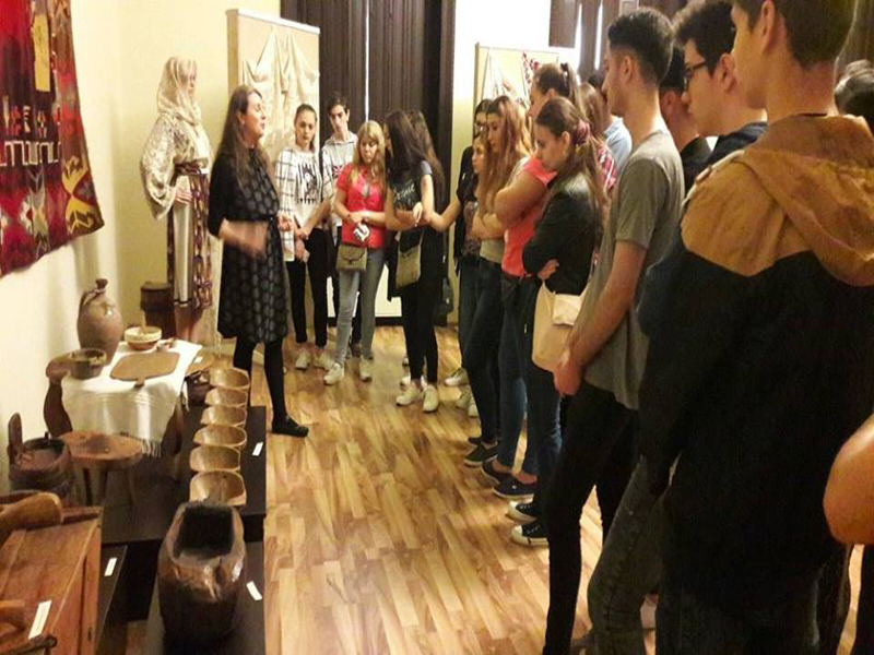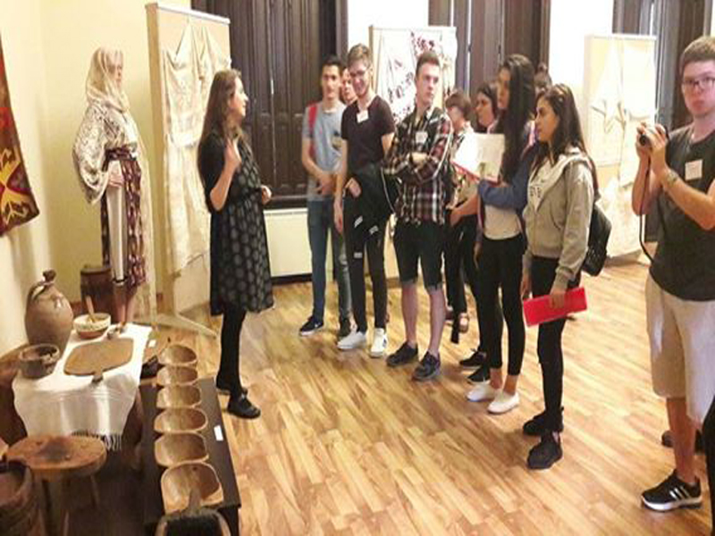 Vizitatori, la Muzeul Brăilei „Carol I” - Secţia Etnografie. Tineri europeni, participanţi la proiect ERASMUS, derulat de Liceul Teoretic „Nicolae Iorga"
