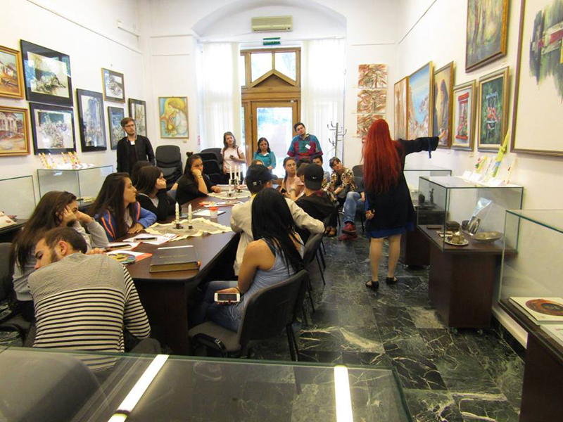 Vizitatori, la sediul Muzeului Brăilei „Carol I” - Centrul Diversităţii Culturale. Tineri europeni, participanţi la proiect ERASMUS, derulat de Liceul Teoretic „Nicolae Iorga"