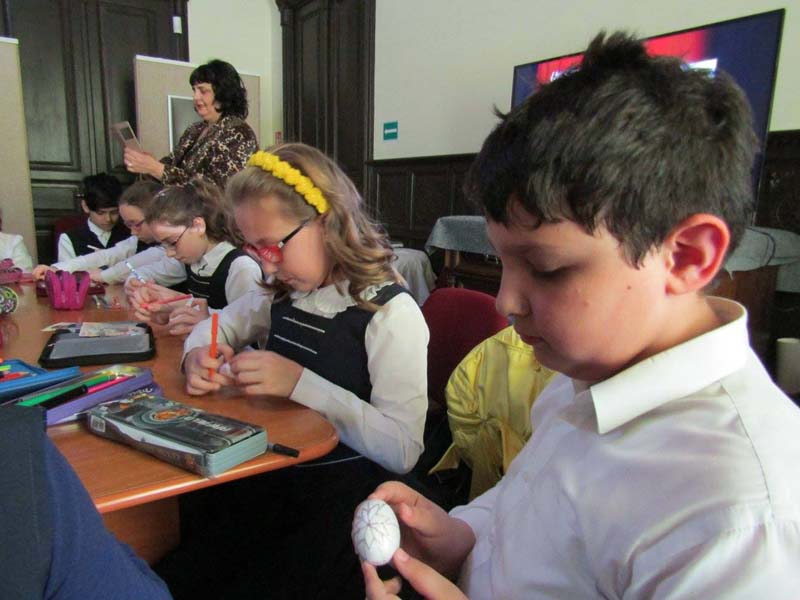 Atelier de încondeiat ouă, la Muzeul Brăilei „Carol I" - Secţia Etnografie – activitate din cadrul proiectului judeţean „Istoria şi geografia oraşului meu de suflet, Brăila". Au participat elevi de la